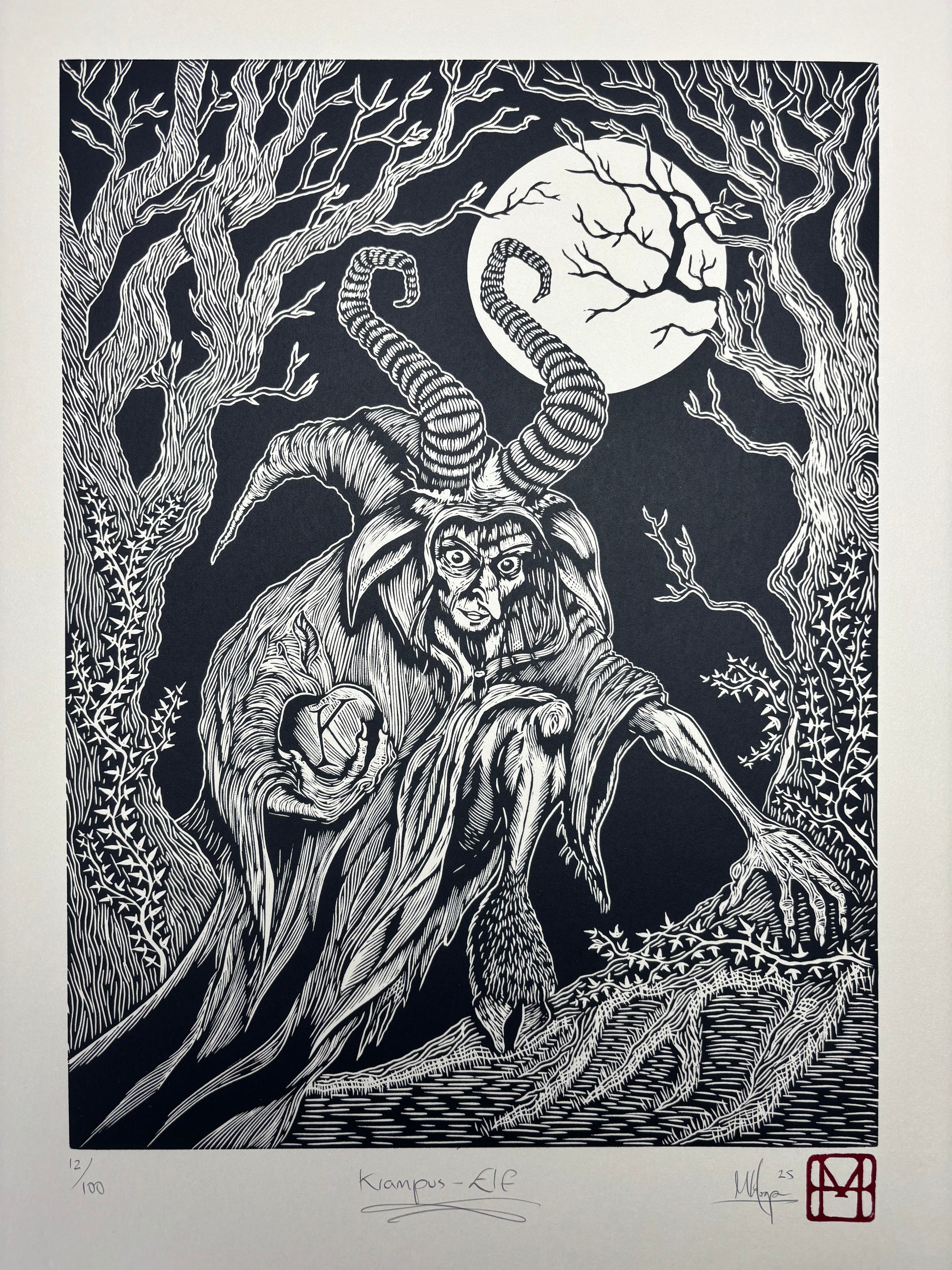 Krampus Run 2025 - ELF - Linocut print